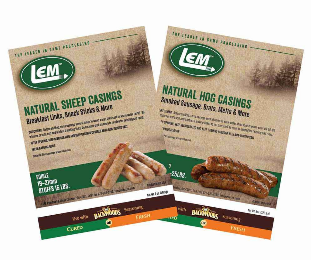 LEM's edible Natural Casings make juicier, tender sausage. They provide a distinctive "pop" when you bite into sausage stuffed in natural casings. These casings should be rinsed in warm water several times, then soaked in water for one hour until soft and pliable. Always refrigerate your natural casings after the bag has been opened. For proper storage, cover casings with salt, place them in an airtight container, and refrigerate them. Properly salted and refrigerated casings should last a year.