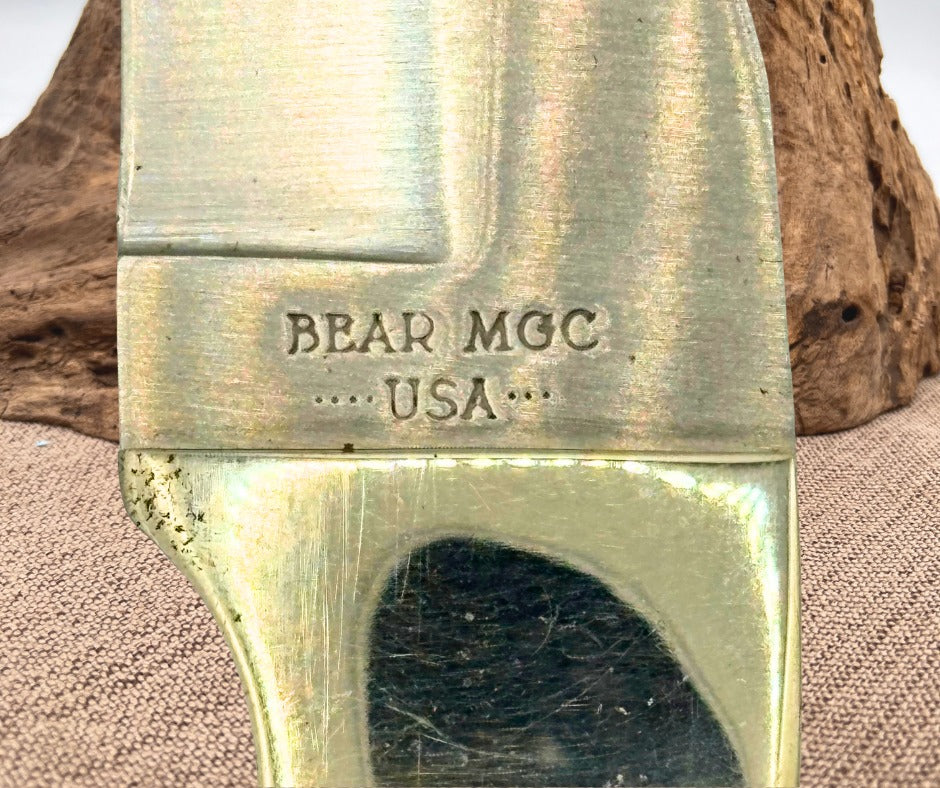 Bear MGC Hunting Knife USA Gut Hook Wood Handle Skinner Leather Sheath (C04)