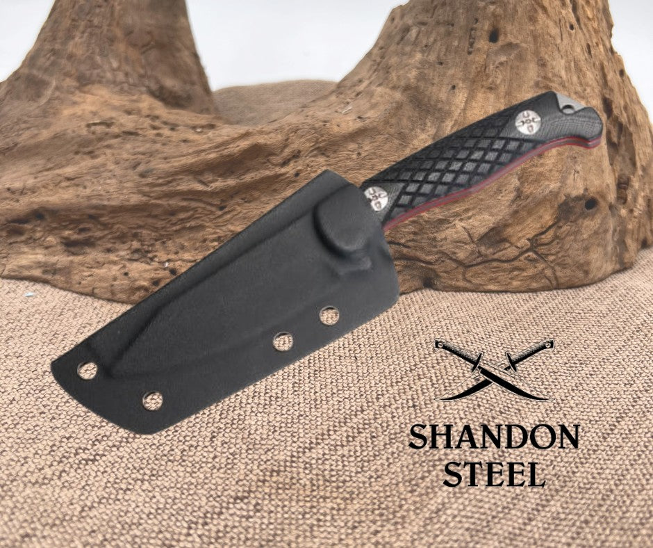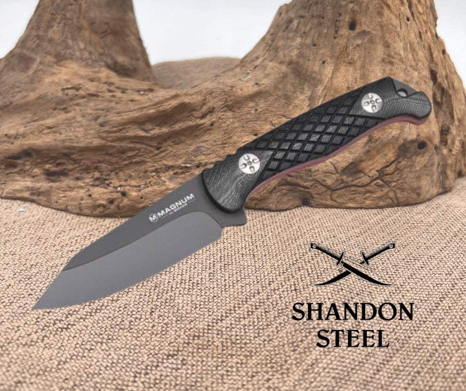 The Magnum Life Knife is one of those knives that would be a contender if you could only own one knife in your lifetime. On the one hand, it is large and robust enough to handle all bushcraft and outdoor scenarios and on the other hand, it is compact enough to be your EDC. The grey coated blade of stainless 440A steel and the handle offering several grip options were designed as a reliable full tang construction. The G10 scales have a non-slip fish skin texture and are lined with subtle but elegant red fiber layers. A Kydex sheath with matching belt adapter supports the knife's uncompromising functionality.