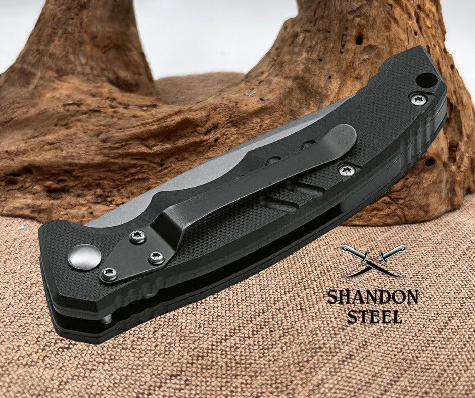 Designed as a tactical automatic knife, the Böker Plus Intention is not only convincing in the field, but also copes effortlessly with all the cutting tasks that arise in everyday life. Pressing the push button releases the dark stonewash blade made of D2, by the tension of the spring behind it, it then flips open automatically. A clean latching slide lock further secures the knife against accidental release. The ergonomically shaped handle is made of textured G10, ribbing in the area of the thumb rest and the pronounced finger recess further improve the hand position. With lanyard loop and clip (tip-down).