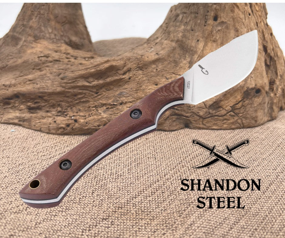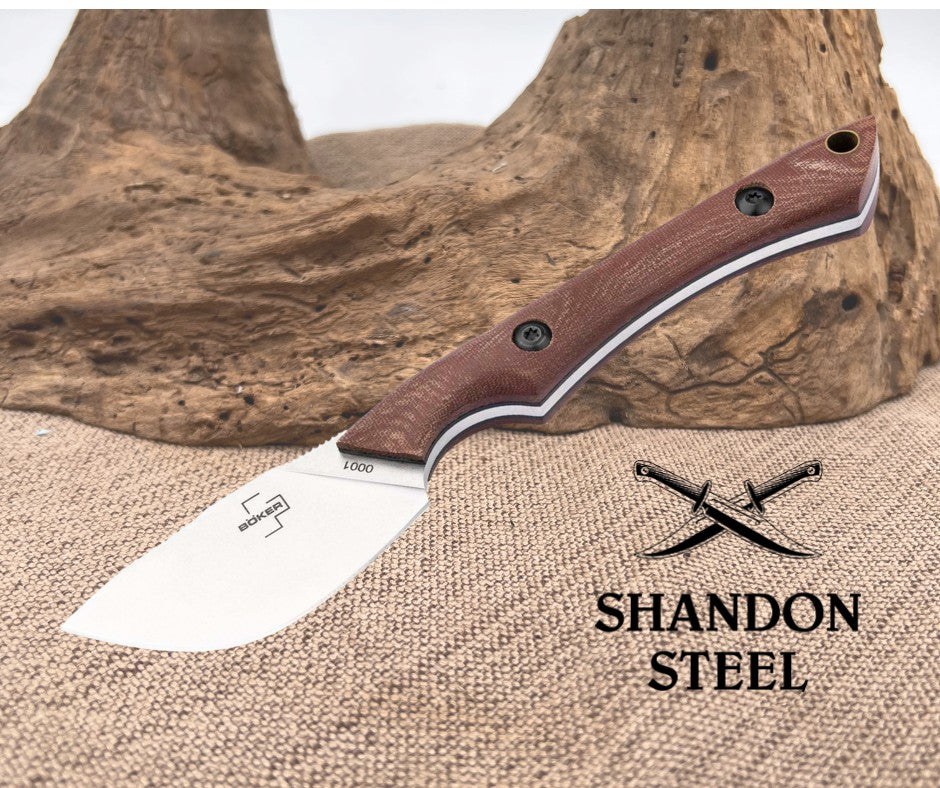Outdoor in pocket format; made for limitless adventures. For custom knifemaker Matthew Gentry from the US state of Michigan, a love of nature means switching off from everyday life, sorting out your thoughts, recharging your batteries. Peace and quiet becomes an experience - unbound, unforgettable, everlasting. Just like the Boker Plus Pocket MUK. The fixed knife breathes silence and creates the moment. Inspired by the iconic Nessmuk hunting knives of adventurer George Washington Sears, the compact Pocket MUK comes with the characteristically bulbous Skinner blade made of Swedish12C27 steel, which has already proven itself in tough outdoor use. The blade shape, the full tang and the ergonomic handle scales made of brown Micarta ensure precise cuts, maximum stability and full control at all times. Hunting tasks such as cutting up game, preparing food outdoors and splitting or carving wood cover the broad spectrum of the camping knife. An austere stonewash finish on the blade emphasizes its robust character, while jimpings on the back of the blade additionally increase work safety. Supplied with a perfectly fitting Kydex sheath and freedom wrapped in fresh morning dew.