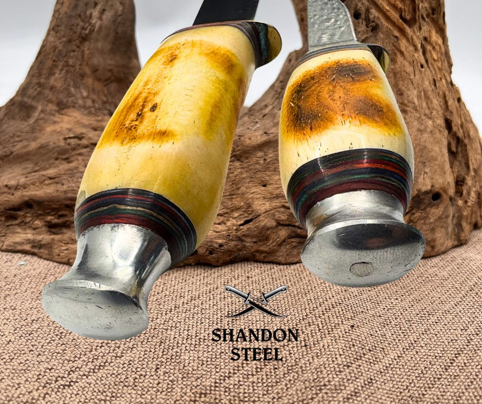 Bone Two Piece 8.5" & 5.25" Hunting Knife Set with Leather Sheath RA-1012-A