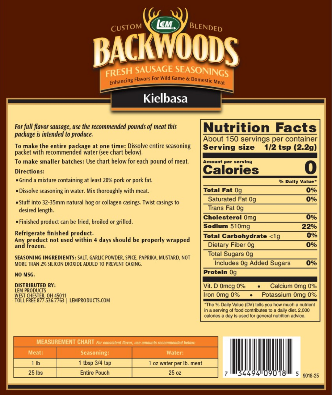 Backwoods Sausage Seasonings have been delighting customers since 1991. We make it simple with our easy to follow instructions on every package. For wild game and domestic meat. We don't know about you, but we're ready for Kielbasa anytime!