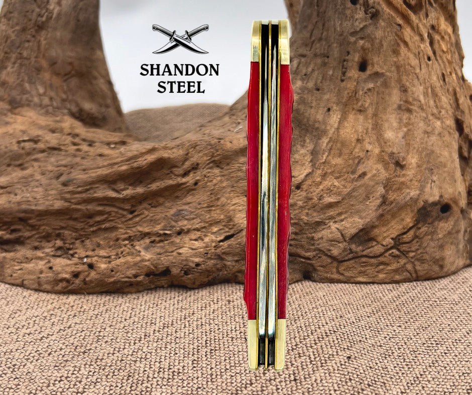 Buck Creek German Stainless Red Bone Trapper Two Blade Folding Pocket Knife -128