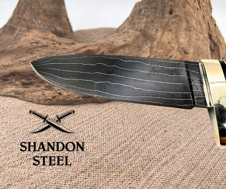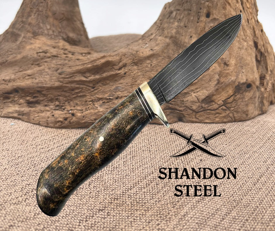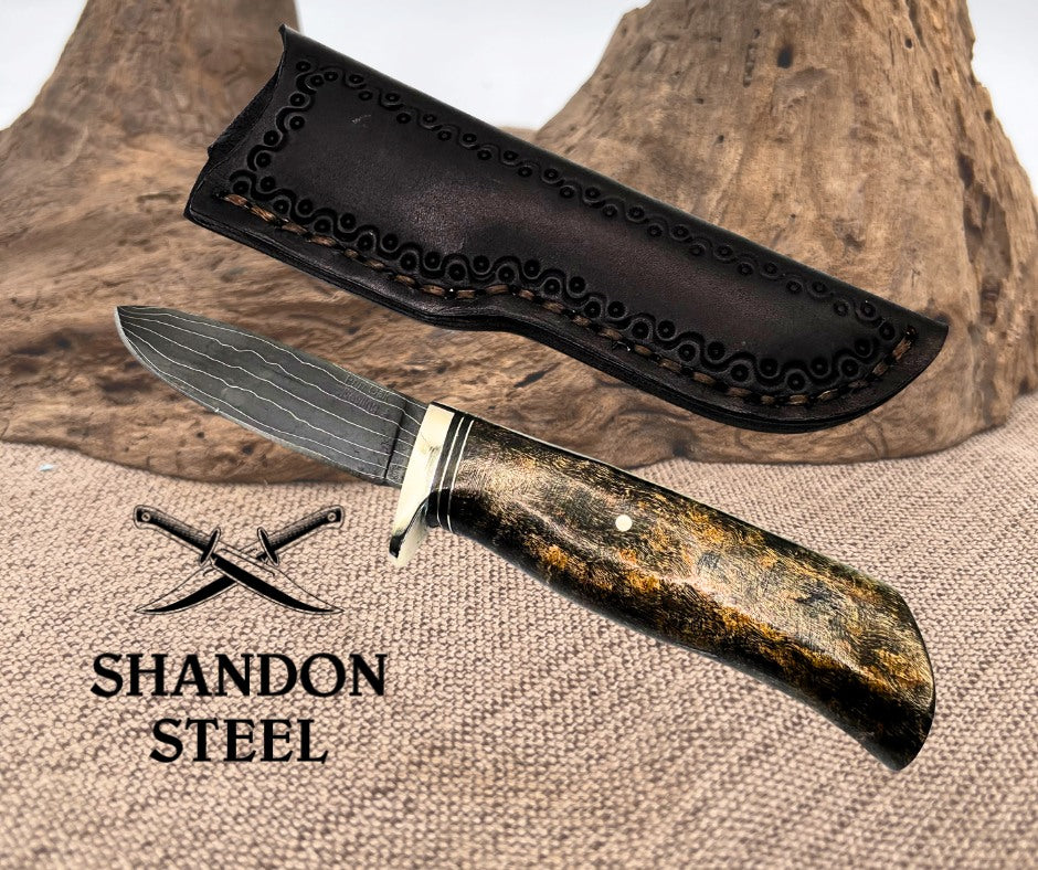 Burr Oak Handmade Random Pattern Damascus Drop Point Hunter Maple Handle Knife 03