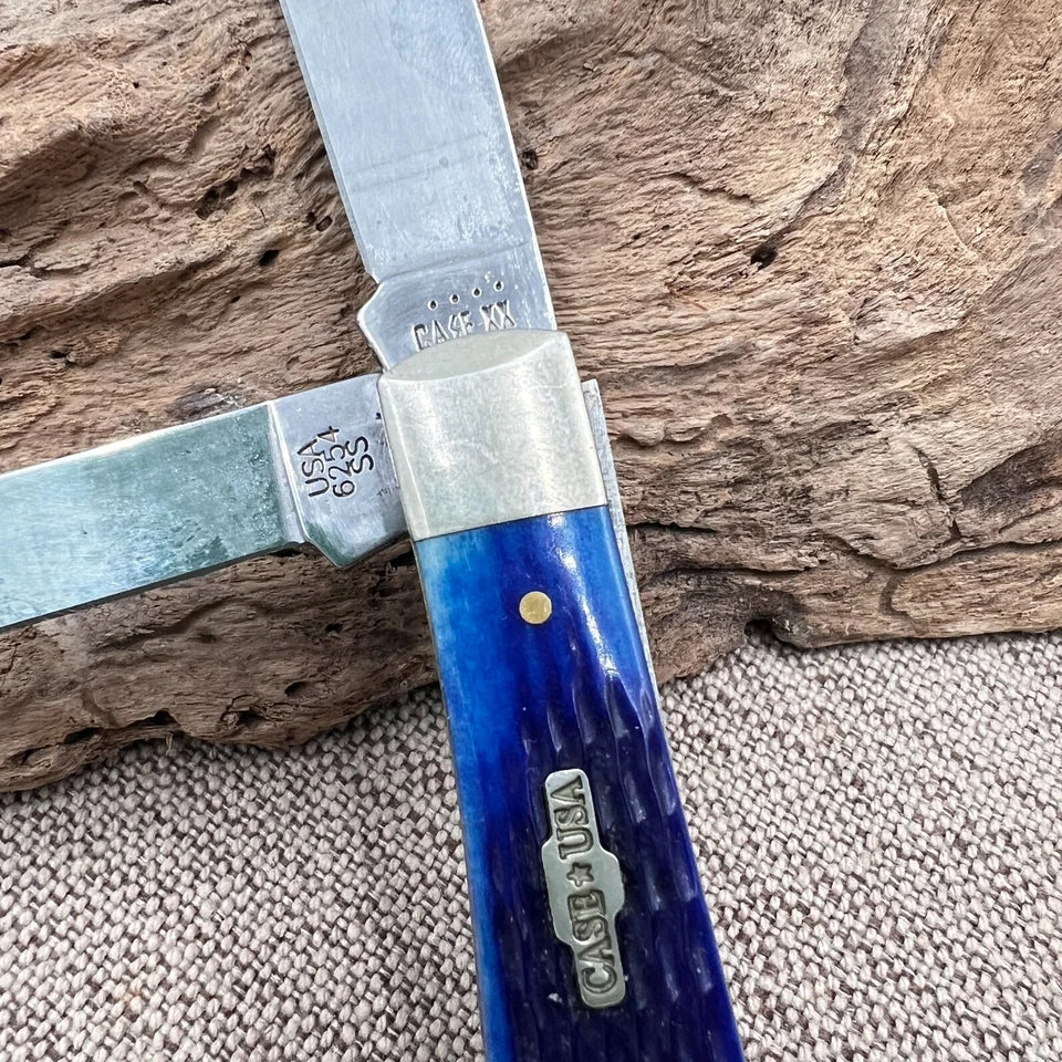 Case XX 2002 Caribbean Blue 2 blade folding Trapper Knife 6254 USA -SS (60)