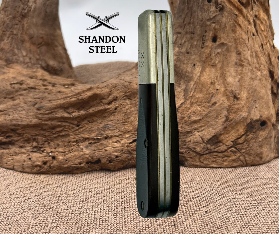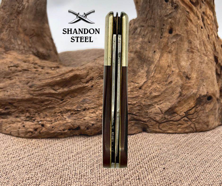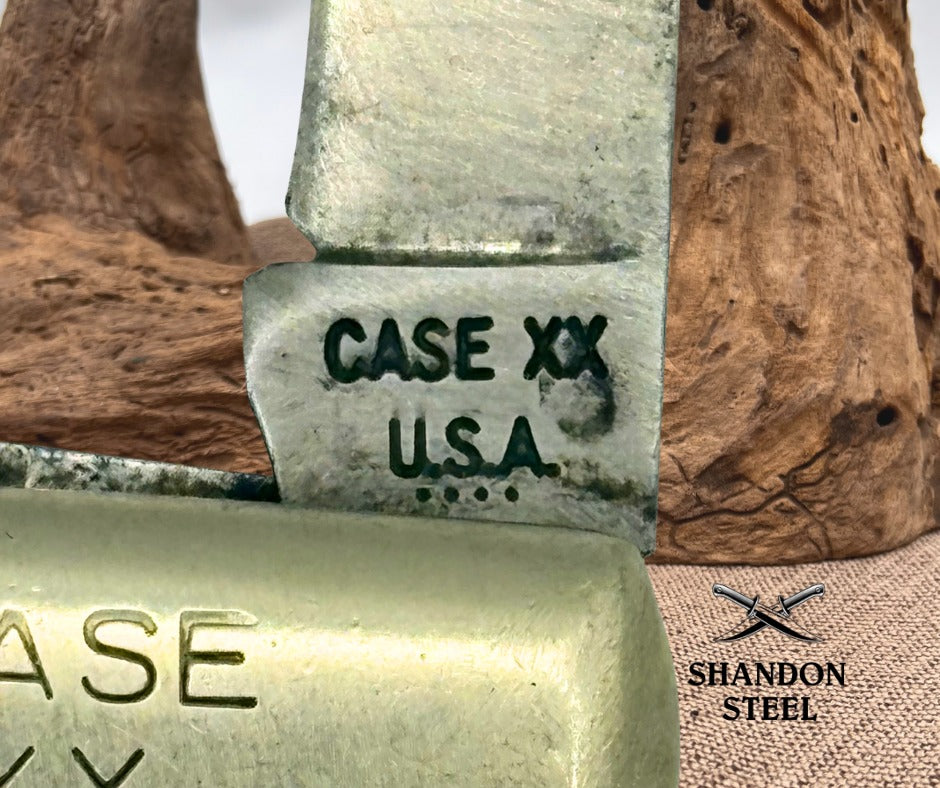 The Case XX 62009 1/2 Sawcut Delrin Handle 2 Blade Pocket Jack Knife from 1976 is a vintage collectible folding knife with a classic design. This ambidextrous pocketknife features a clip point and pen blade made of carbon steel, set in a brown Delrin handle. With a manual opening mechanism and a slipjoint lock type, this original piece from the United States is a must-have for collectors of vintage folding knives. The two blades and intricate design of this pocket knife make it a valuable addition to any collection. Measures 3-3/8" closed, good snap.