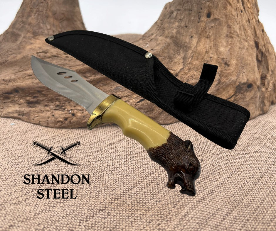 Collector’s Wolf Head 10.5 Inch Fixed Blade Knife Original Box w Sheath TR2219W