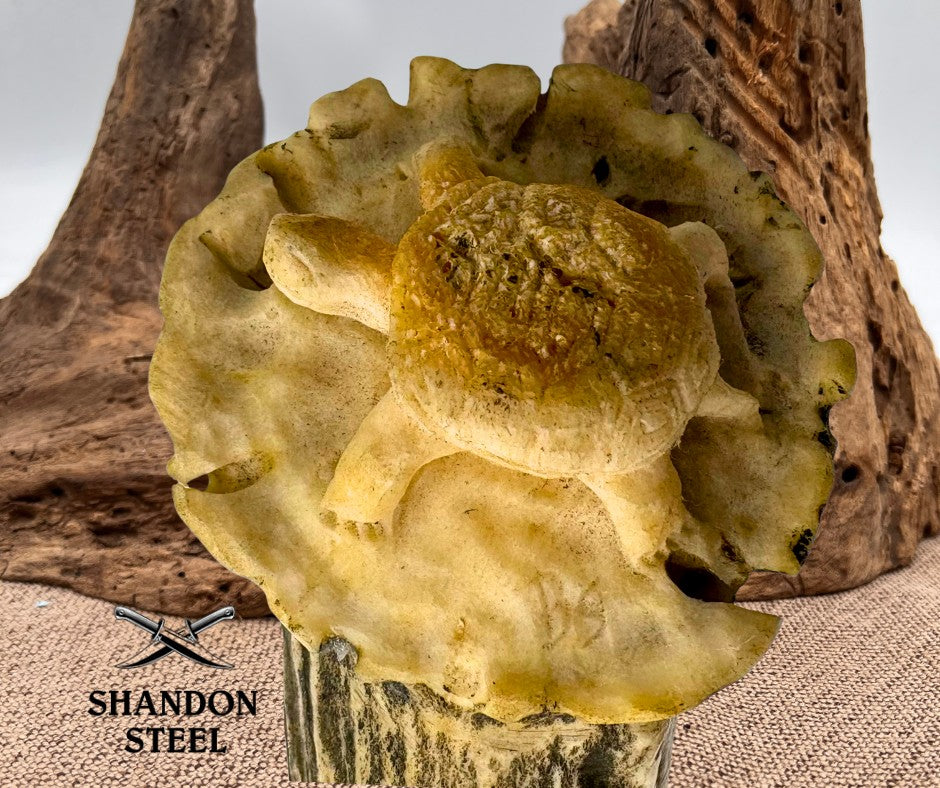 This Custom Clip Point Bowie Knife is a beautiful and functional piece with a unique turtle carving on the pommel. Handmade with a stag handle and carbon steel blade, this knife is over 5 inches long with a clip point blade. Designed for ambidextrous users, this original piece from the brand BS is a versatile tool for various purposes including hunting, everyday carry, combat, and survival. Made in the United States, this collectible fixed blade knife is a stunning addition to any collection of knives, swords, and blades.