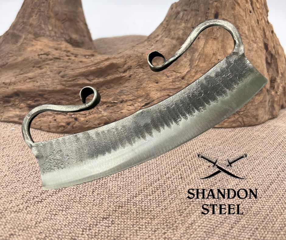 An awesome handmade piece for the cook who values quality. This hand forged pizza cutter has a 9.5" blade and is ready to get to work in your kitchen. Hand forged in Ohio!