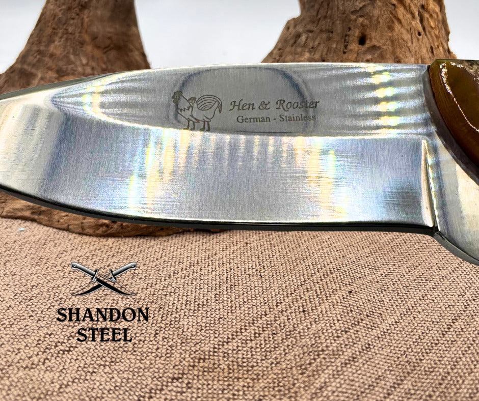 Hen & Rooster HR5030 Fixed Blade Ram Horn Hunting Knife Stainless w/ Sheath (02)