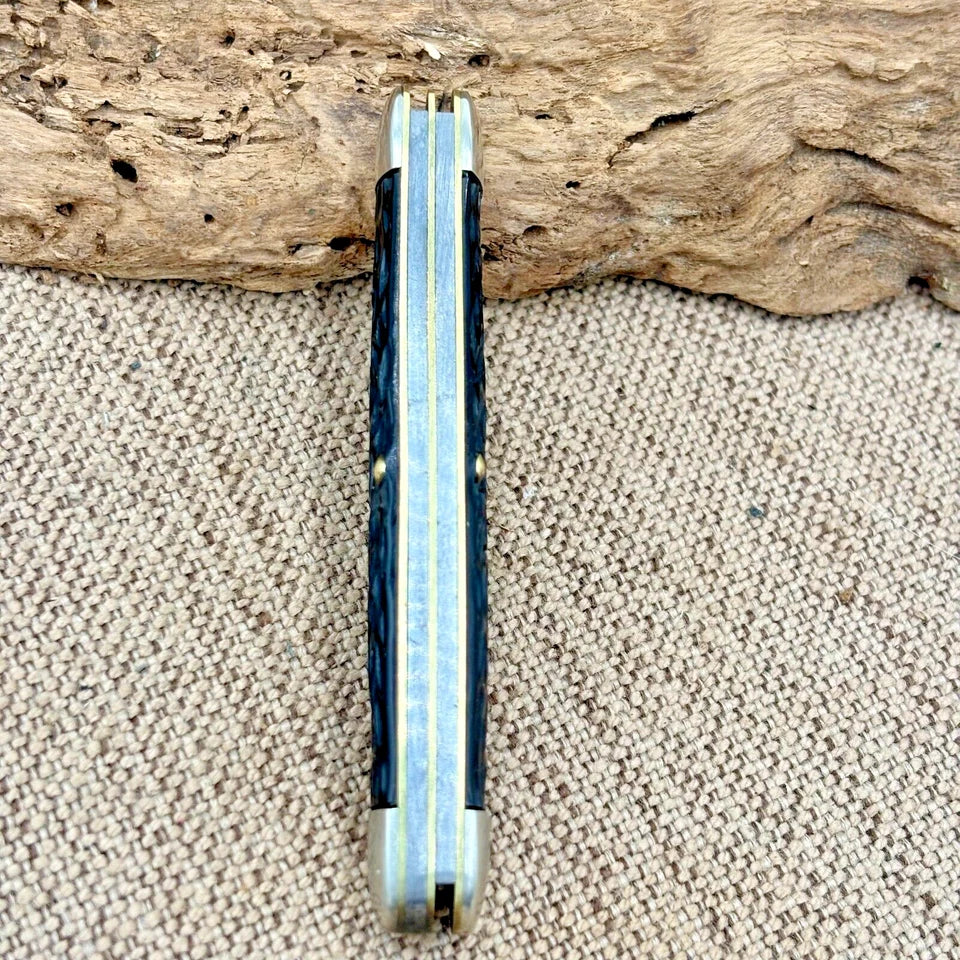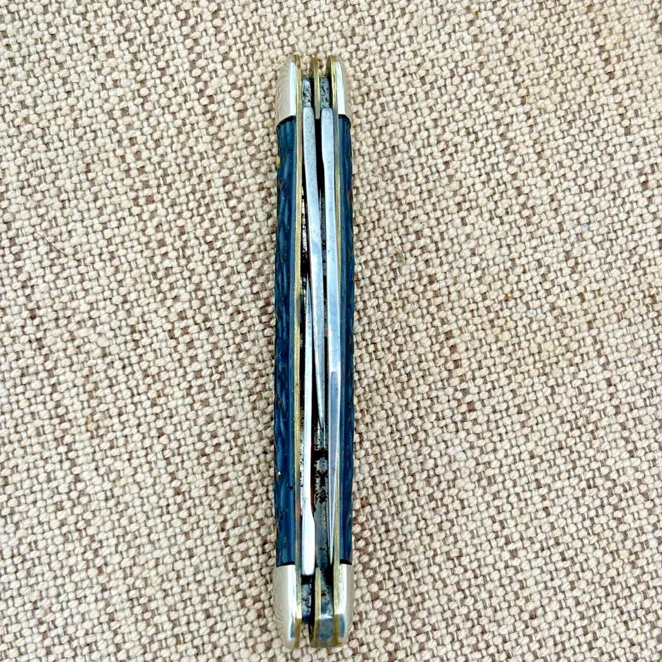 Crafted for versatility and reliability, the Imperial USA Stockman is a three-blade pocket knife designed to meet the needs of both everyday carry and outdoor enthusiasts. With its durable carbon steel blades— featuring a clip point, pen, and spey point configuration—this knife is suited for a variety of cutting tasks. The jig black composite handles provide a secure grip, ensuring comfort and control during use. This pocket knife boasts a manual opening mechanism and a slipjoint lock type, offering both safety and convenience. Its compact blade range of under 2.75 inches makes it an ideal choice for those who value compactness without compromising on functionality. The knife's brown color and plastic handle material complement its classic, original design, making it a timeless addition to any collection. Measures 3.5" closed.