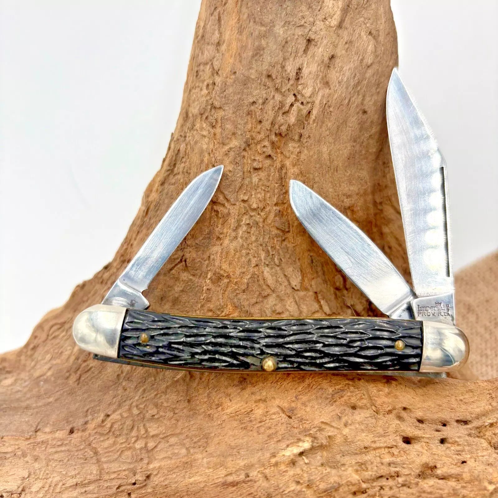 Imperial USA Stockman 3 Blade Pocket Knife, Jig Black Composite Handles (30)