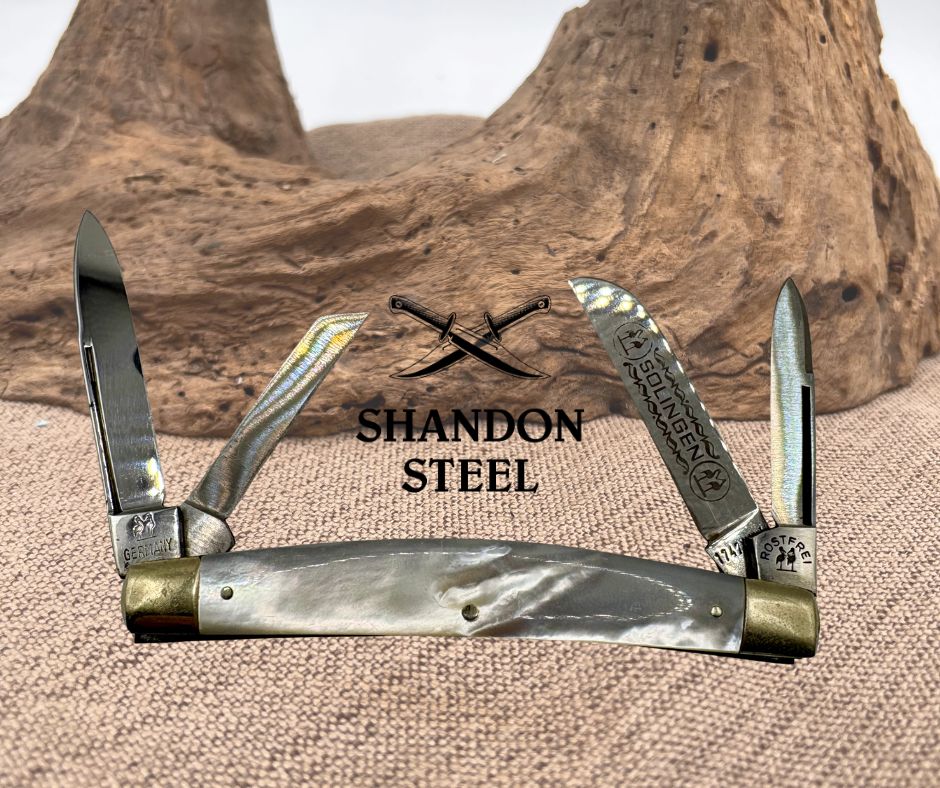 Kissing Krane Pearl handle Congress Robt Klaas Solingen Germany Model 1747 Mother of Pearl Handles - No Cracks - Nickel Silver Bolsters - Brass Liners 3 3/4 inches closed Good snap - no wobble
