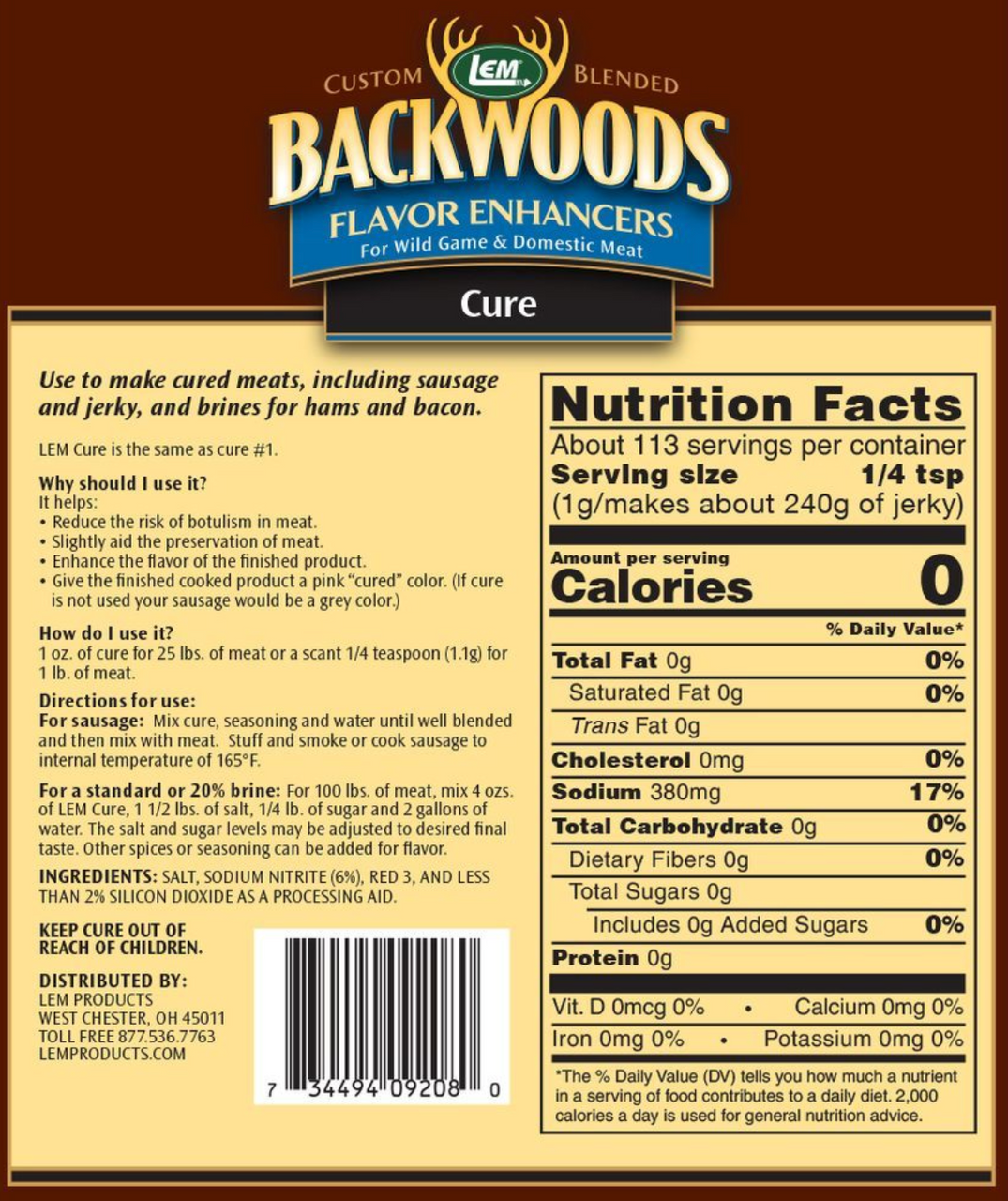 Backwoods Cure can be used in making sausage, jerky, bacon or ham. It helps: