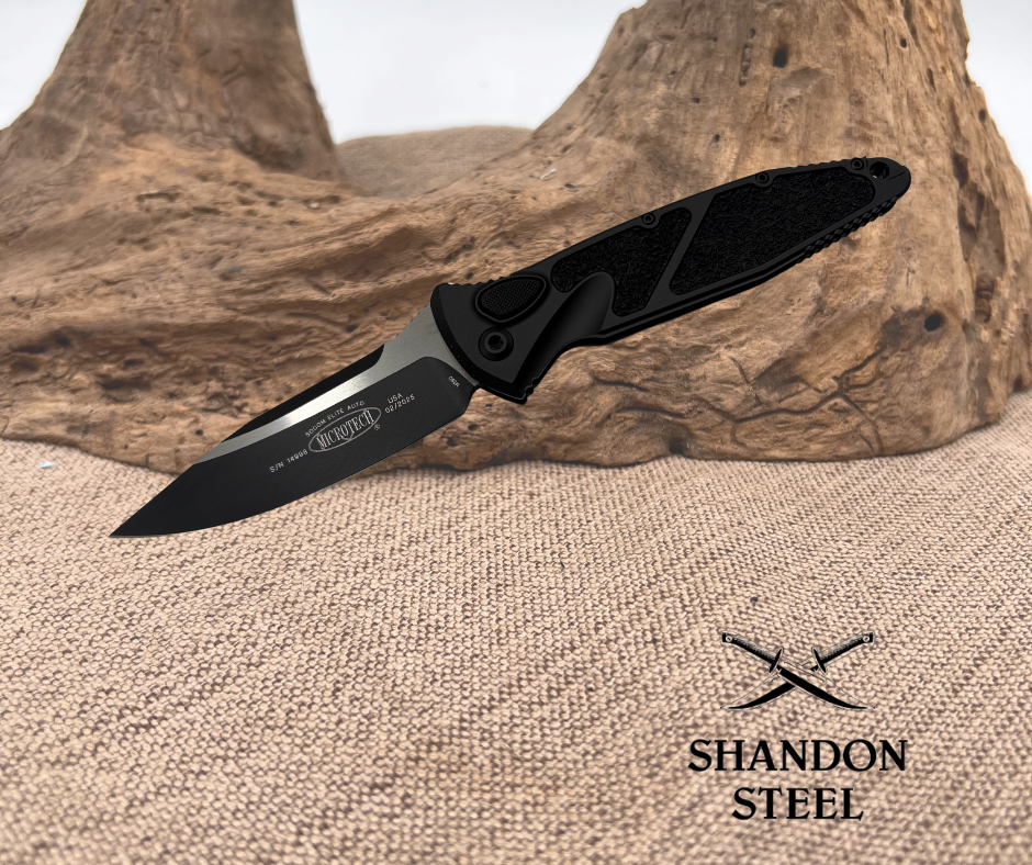 Microtech Knives | 160A-1T SOCOM Elite Auto S/E - Black Handle - Two-Tone Black Blade