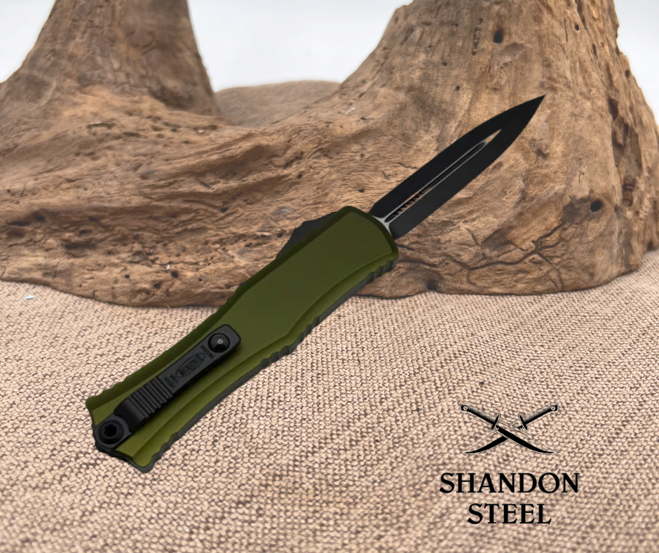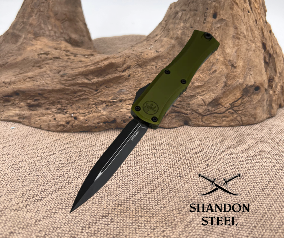 Microtech Knives Mini Hera Black D/E M390MK w/ OD Green Handle 1702M-1 OD