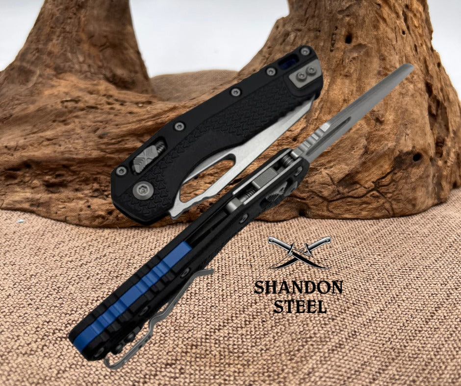 Microtech Knives MSI RAM LOK Black Polymer Injection Molded w/ Blue Back Strap & M390MK 210T-10PMBK-A1