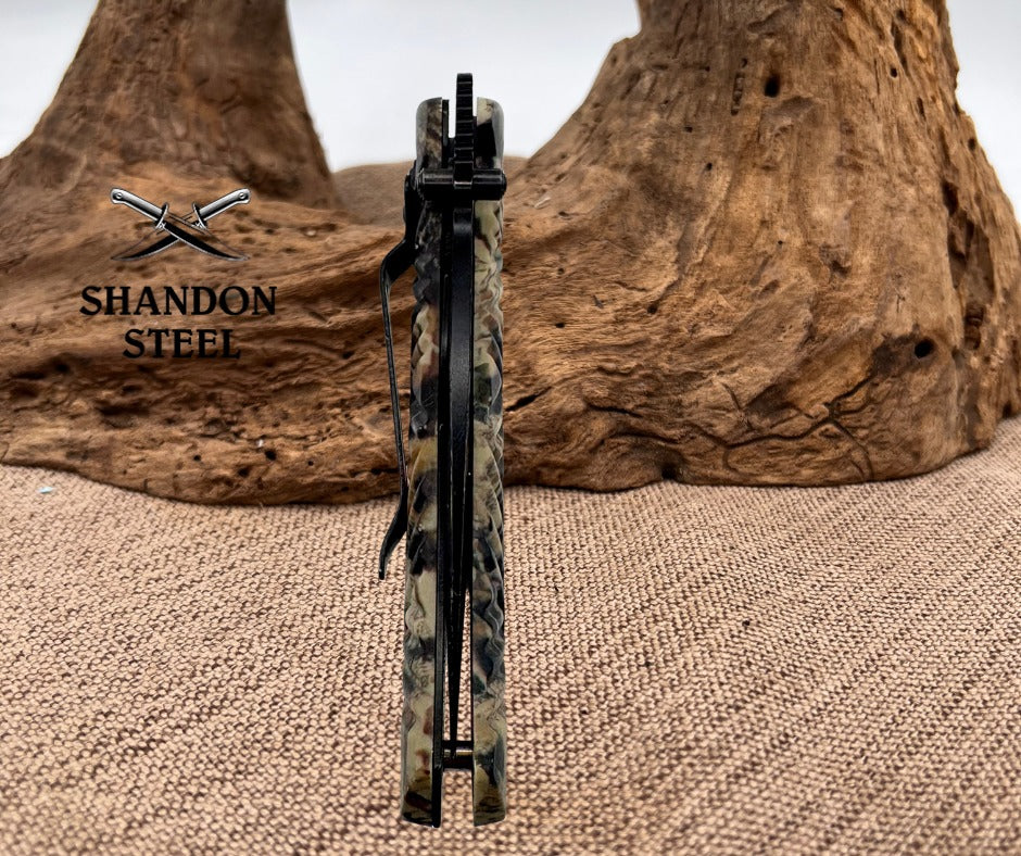 Rite Edge Folder Knife Folding Drop Point Pocket Knife Camo Thumb Stud (26)
