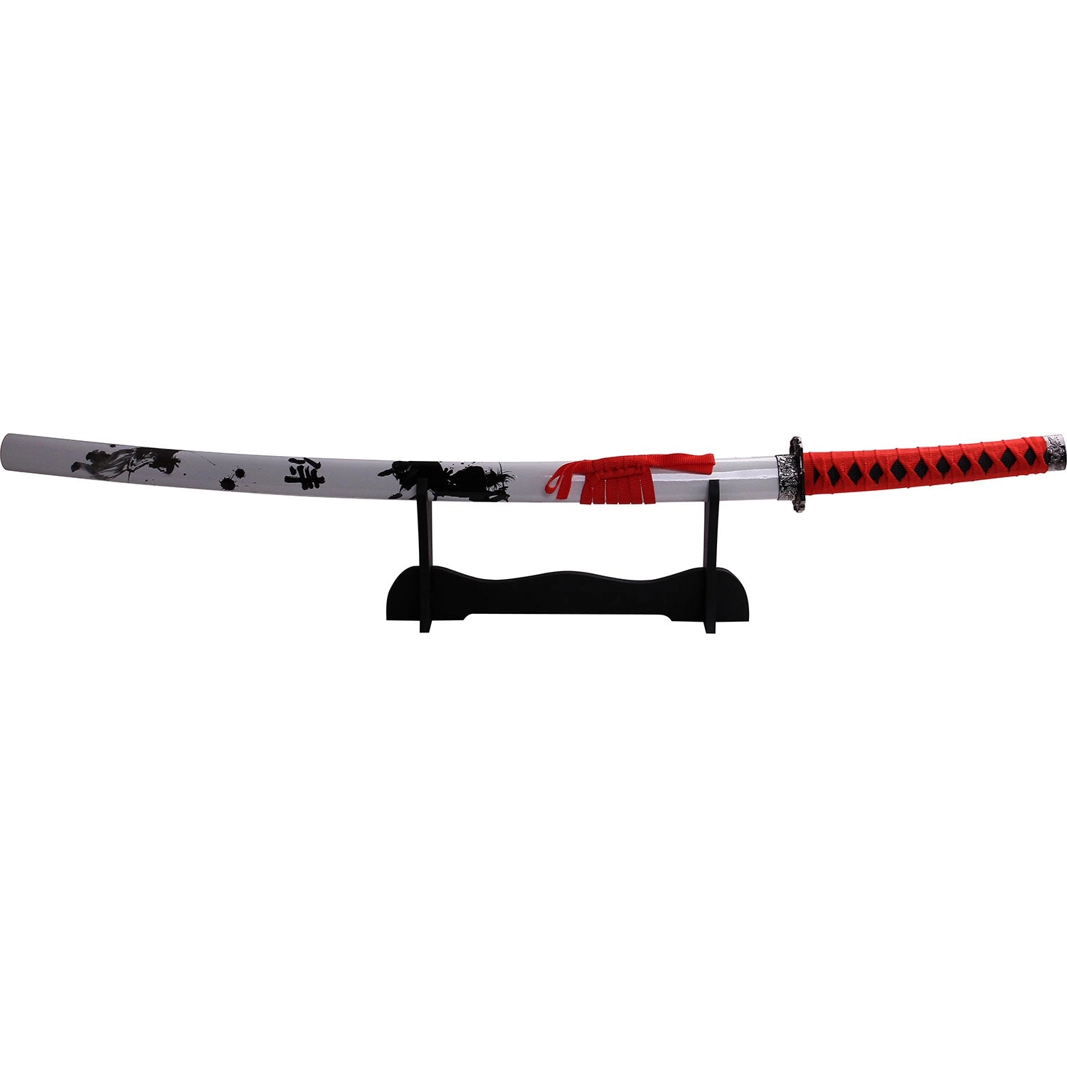 - INCLUDES SAMURAI PRINT ON WHITE SCABBARD AND WOOD STAND