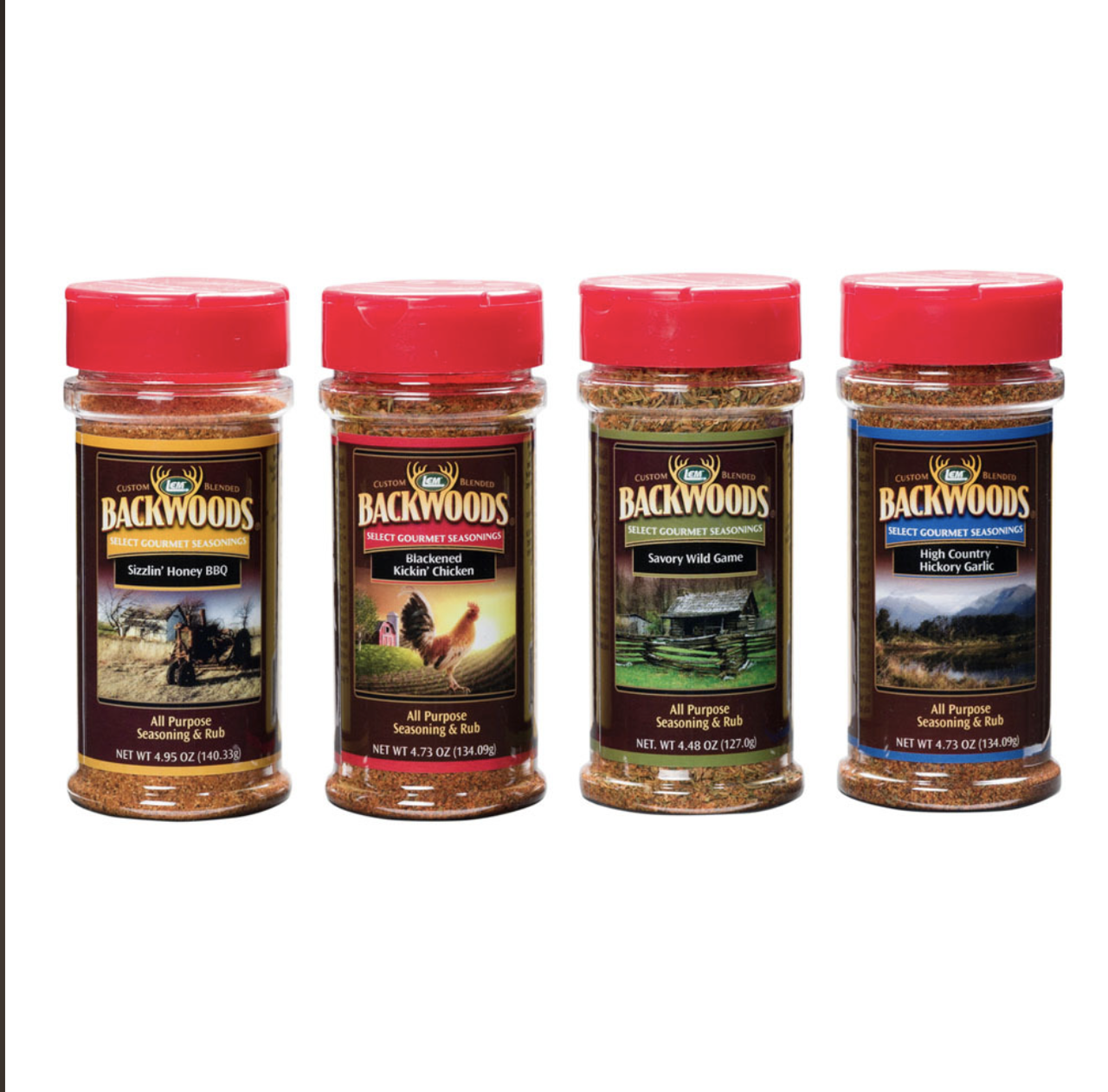 Available in: Sizzlin' Honey BBQ, Savory Wild Game, High Country Hickory Garlic and Blackened Kickin' Chicken.