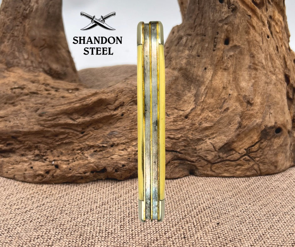 The Schrade Scrimshaw 1980 Carbon Steel Raccoons Stockman Knife is a high-quality pocketknife made in the United States. It features a manual opening mechanism and a tri-blade design with a clip point, sheepsfoot, and spey point blade edge. The handle is made of durable Delrin material in a cream color, and the knife is ambidextrous for versatile use. With a slipjoint lock type and original design, this collectible folding knife is a reliable and authentic piece from the Schrade brand.