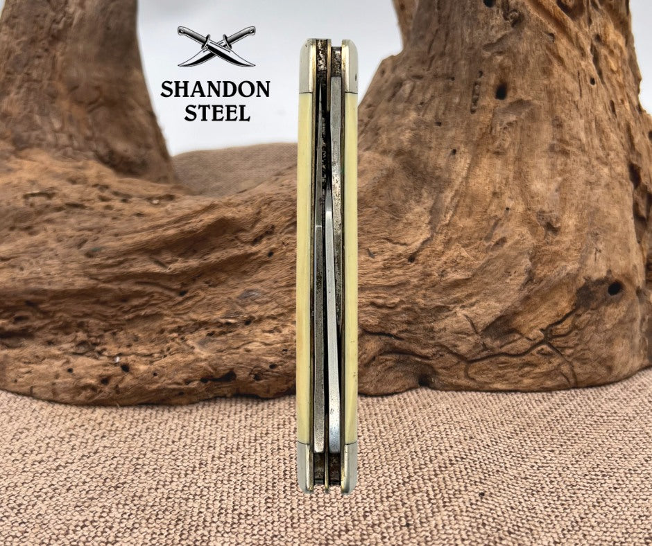 SCHRADE SCRIMSHAW 1980 CARBON STEEL RACCOONS STOCKMAN KNIFE U.S.A. SC505 (127)