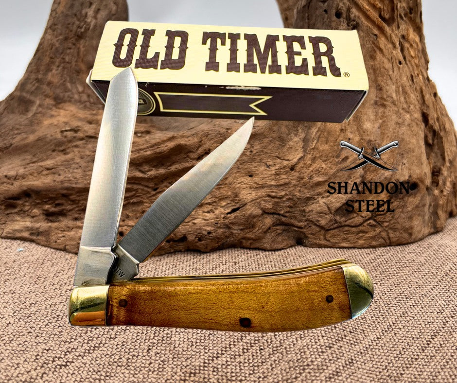 Schrade Trapper Old Timer Pocket Knife Stainless Blade Desert Iron Wood Handle