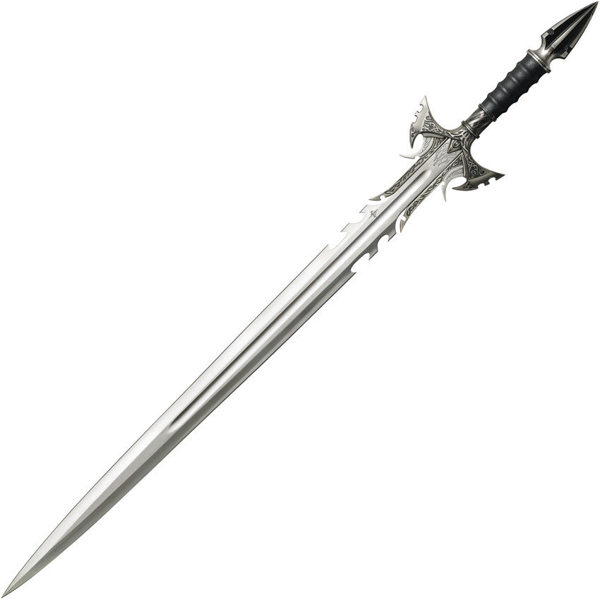 45.5" overall. 33" satin finish AUS-6 stainless blade. Black leather wrapped handle. Blackened finish ornate solid metal hand guard and ridged, armor piercing pommel. Serialized. Limited edition of 2,000. Includes a custom art print by Kit Rae. Certificate of Authenticity. Officially licensed product. Boxed.
