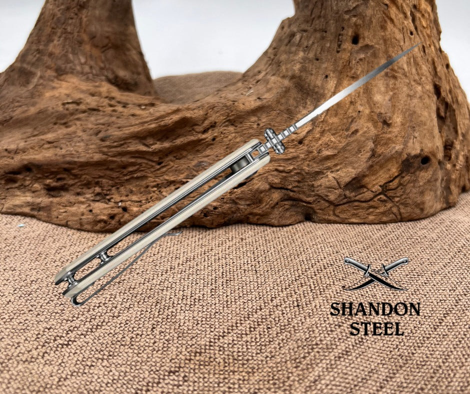 SENCUT Stratex Flipper & Thumb Stud Knife Ivory G10 Handle (3.17" Satin Finished 9Cr18MoV Blade) S25055-2