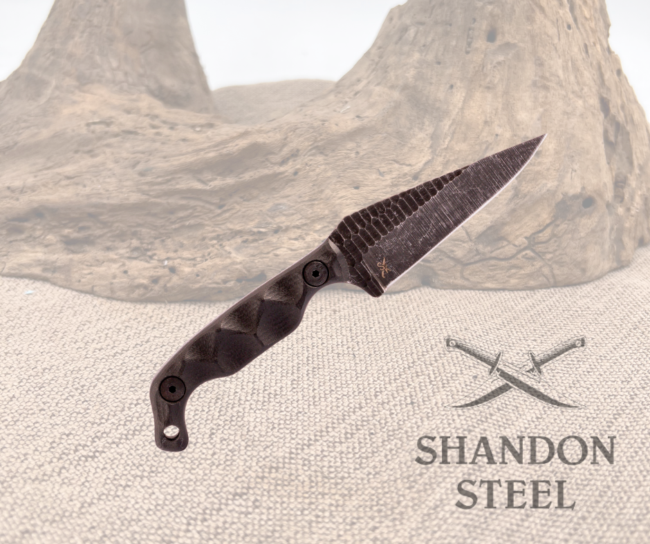The Mini1 is a small, compact knife designed for knife enthusiasts, outdoorsmen, and survivalists who demand reliability and performance. Crafted from 1095 high carbon steel and handmade in the USA, it features a cutting edge with a slight belly, making it perfect for smooth, controlled cuts in a variety of situations. Its portable size allows for easy carry without sacrificing strength, while the ergonomic handle ensures a secure grip in all conditions. Whether you’re camping, hiking, or preparing for survival, the Mini1’s tactical design and durable construction make it a must-have tool. Handmade in the USA, this versatile knife is ready for any challenge the outdoors can throw your way.