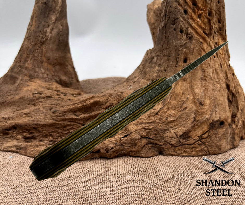 The Mini1 is a small, compact knife designed for knife enthusiasts, outdoorsmen, and survivalists who demand reliability and performance. Crafted from 1095 high carbon steel and handmade in the USA, it features a cutting edge with a slight belly, making it perfect for smooth, controlled cuts in a variety of situations. Its portable size allows for easy carry without sacrificing strength, while the ergonomic handle ensures a secure grip in all conditions. Whether you’re camping, hiking, or preparing for survival, the Mini1’s tactical design and durable construction make it a must-have tool. Handmade in the USA, this versatile knife is ready for any challenge the outdoors can throw your way.