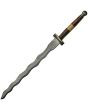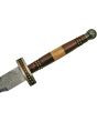 33.75" overall. 23.5" Damascus steel blade. Stainless guard and pommel. Wood and bone handle. Brown leather sheath. Boxed.