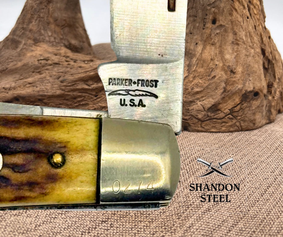 Parker Frost USA Vintage 1978 Three Blade Stockman Stag Folding Pocket Knife -59