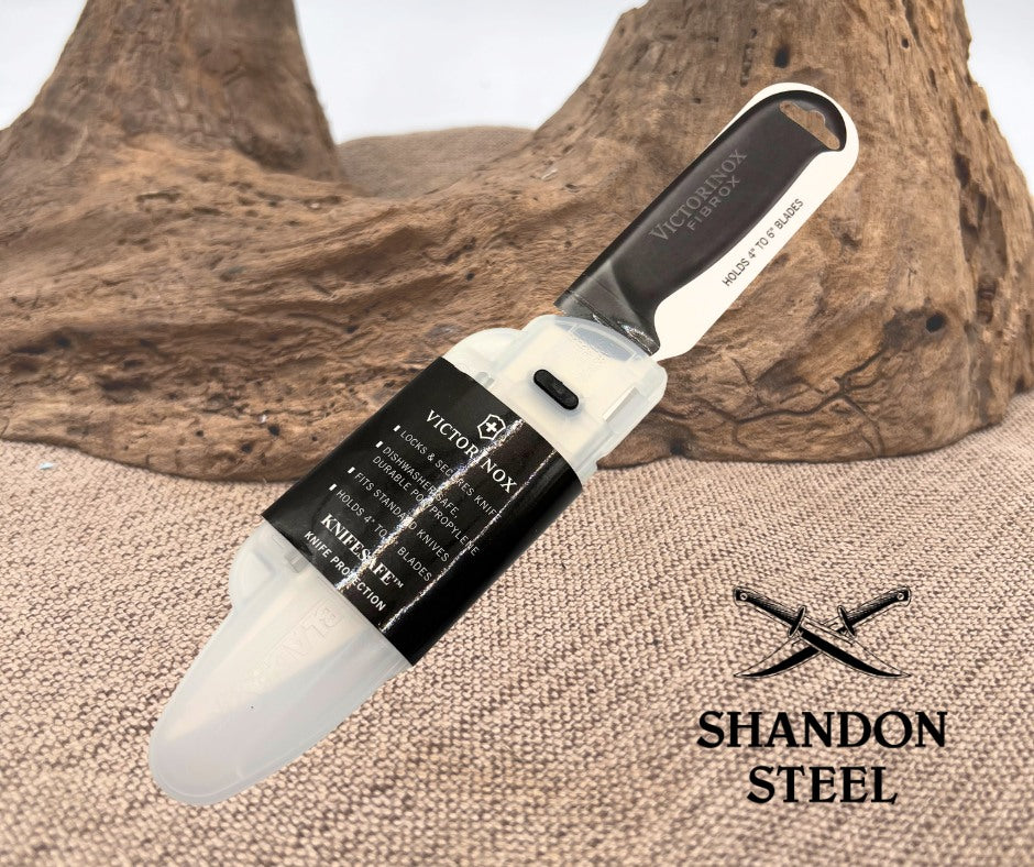 BladeSafes are durable polypropylene construction. Locks and secures knives, holds knives with 4" - 6" blades. Ideal to protect, store or transport knives. Dishwasher safe.