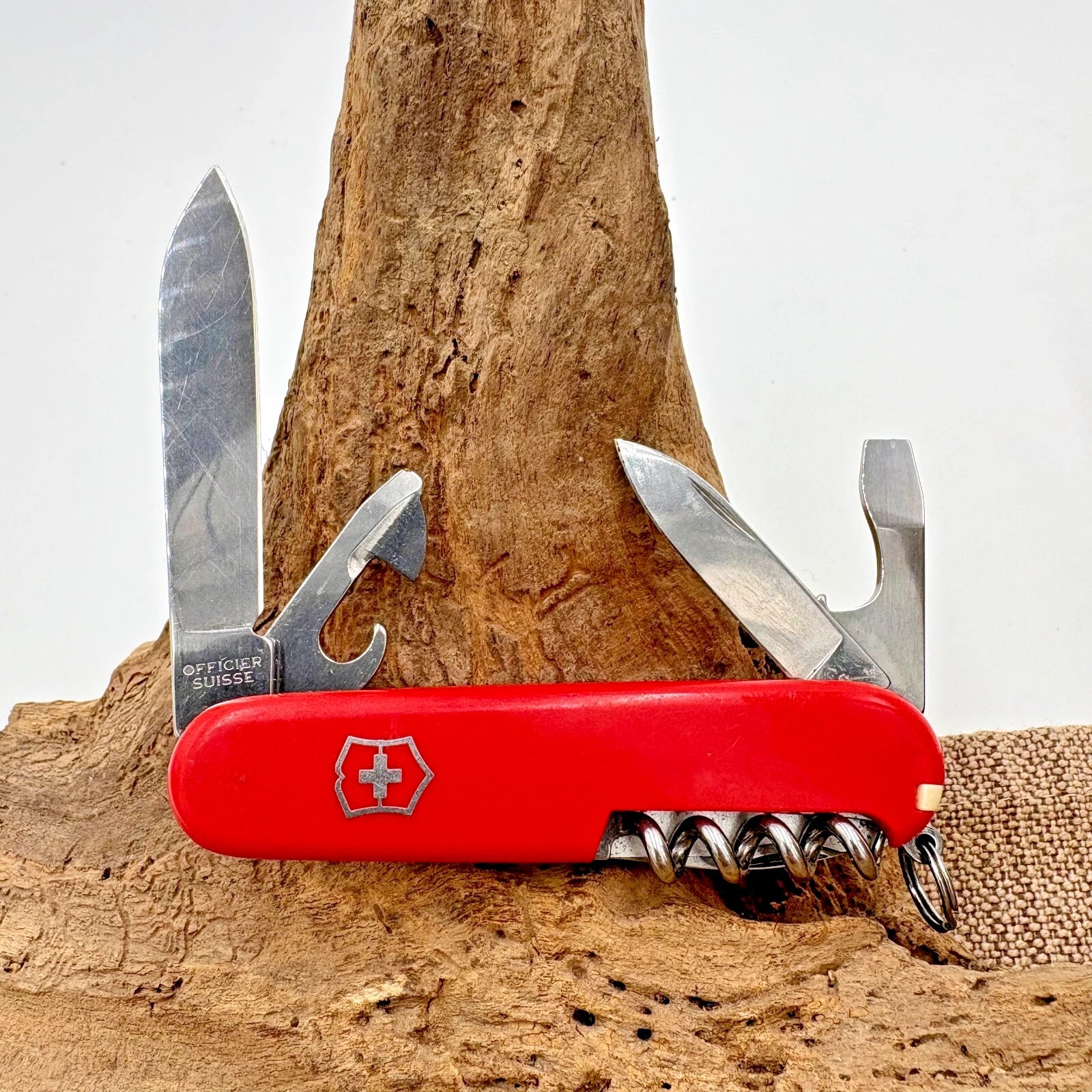 Crafted for versatility and precision, the Victorinox Spartan 91mm Swiss Army Knife is an essential tool for outdoor enthusiasts and professionals alike. With its robust stainless steel blades and a variety of 14 functions, including a punch, toothpick, corkscrew, screwdriver, tweezers, and bottle opener, this knife is designed to meet all your cutting and tool needs. The vibrant red Cellidor handle ensures comfortable handling and a sharp contrast to the classic design, making it easily recognizable and a great companion for any adventure. The knife features a manual opening mechanism and a slipjoint lock type, providing safety and convenience when in use. Its compact 91mm size makes it easily portable, while the ambidextrous design accommodates all users with ease. Made in Switzerland, the Victorinox Spartan Swiss Army Knife reflects a legacy of quality and craftsmanship, ensuring that it will be a reliable companion for years to come.